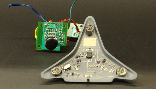 Herausragende Funktionsintegration auf kleinstem Raum beweist Multiple Dimensions derzeit für einen Spielzeughersteller. Für ein besseres Spielerlebnis wurde in einem Kunststoffbauteil auf kleinstem Raum ein elektronischer Schaltkreis integriert — samt Batterie, kapazitivem Schalter und LED-Licht. «Für eine Leiterplatte wäre einfach nicht genügend Platz vorhanden gewesen. Auch hier ist das Bedienelement, also der kapazitive Schalter, absolut verschleissfrei, da kein mechanischer Kontakt besteht.»