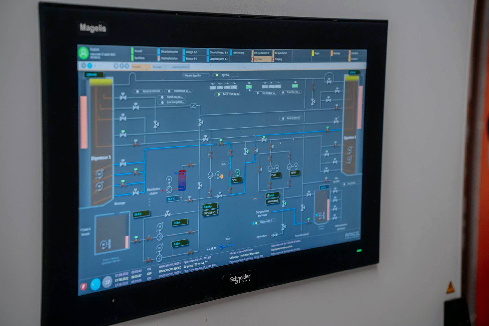 Mit einer Monitoring-Software des Schneider Electric Partners AVEVA steht dem kleinen Team der ARA Yverdon zudem eine fortschrittliche Überwachungslösung zur Verfügung. Dank entsprechender Visualisierungsfunktionen ist es möglich, sämtliche Vorgänge in den verschiedenen Becken der Kläranlage (Schlamm, biologische Behandlung, Biogas und Wärmetauscher) permanent und in Echtzeit zu überwachen. Auch Berichte und Leistungsanalysen lassen sich damit generieren sowie Wartungen vorausschauend planen. Treten Störungen auf, wird das Bereitschaftspersonal per intelligenten Alarm mobil auf dem Smartphone informiert und kann mittels Fernzugriff erste Fehlerdiagnosen erstellen. Und sollte es mal komplizierter werden: Die Fachleute von AMICS stehen den Betreibern der Anlage auch weiterhin als Servicepartner zur Verfügung, haben Zugriff auf die Daten und können mit ihrer Expertise bei Wartungs- und Reparaturarbeiten unterstützen.