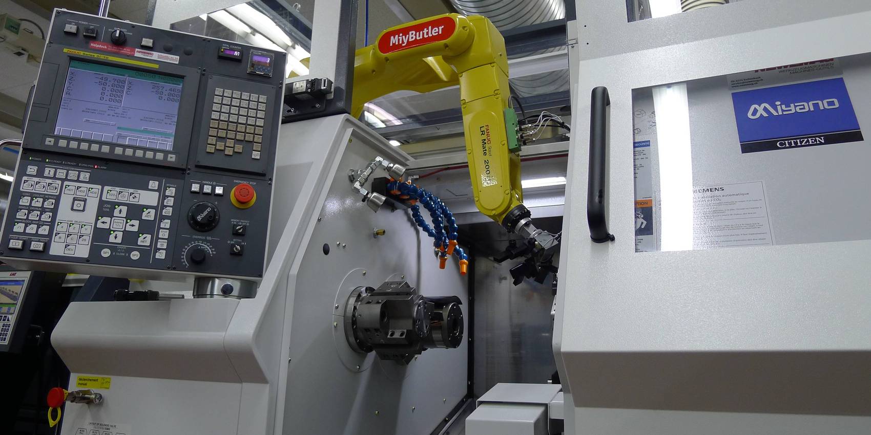 Automation auf kleinstem Raum ist besonders in der Schweiz gefragt. Eine solche Lösung ist der MiyButler von Newemag, ein Industrieroboter der Marke Fanuc LR MATE 200 7L.
