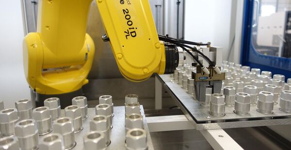 Das Handling des Roboters «broButlers» ist neben der Maschine platziert. Ein grosser Vorteil ist, dass sich diese Standardlösung einfach an die Steuerung anbinden lässt. Dem mannarmen Fertigen steht nichts mehr im Wege und Kleinserien werden wirtschaftlich gefertigt