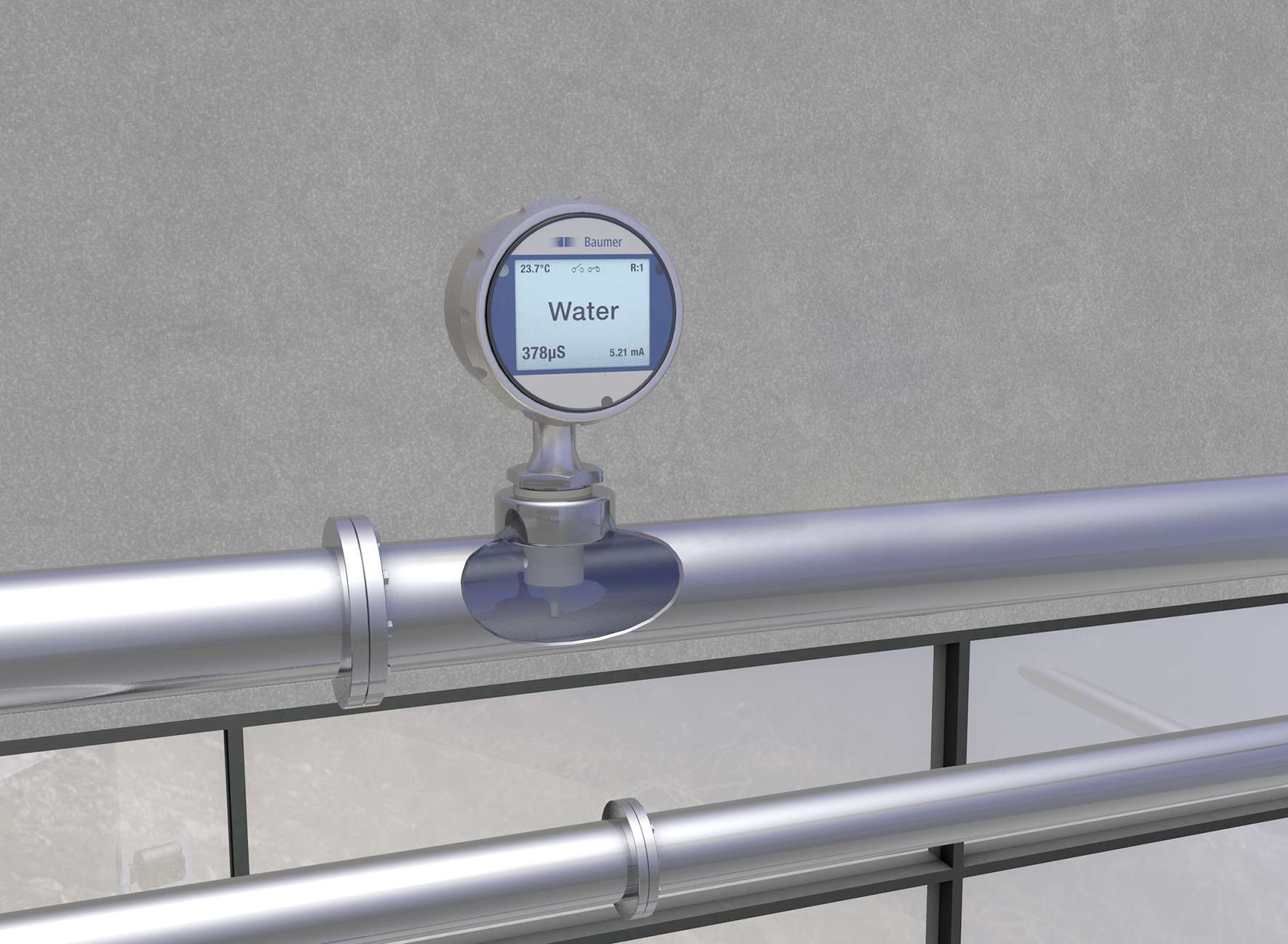 Die ohnehin schon kurze Ansprechzeit kann sogar auf null reduziert werden, indem der Leitfähigkeitssensor mit einem Durchfluss- und Temperatursensor wie FlexFlow kombiniert wird. Dies ist einfach realisierbar, da Baumer Sensoren per digitaler IO-Link-Schnittstelle bidirektional über die Steuerung miteinander kommunizieren können. Dadurch können die Messwerte des einen Sensors in einem anderen Sensor genutzt werden, um komplexe Messaufgaben zu lösen oder Prozesse und Produktionsabläufe weiter zu optimieren.
