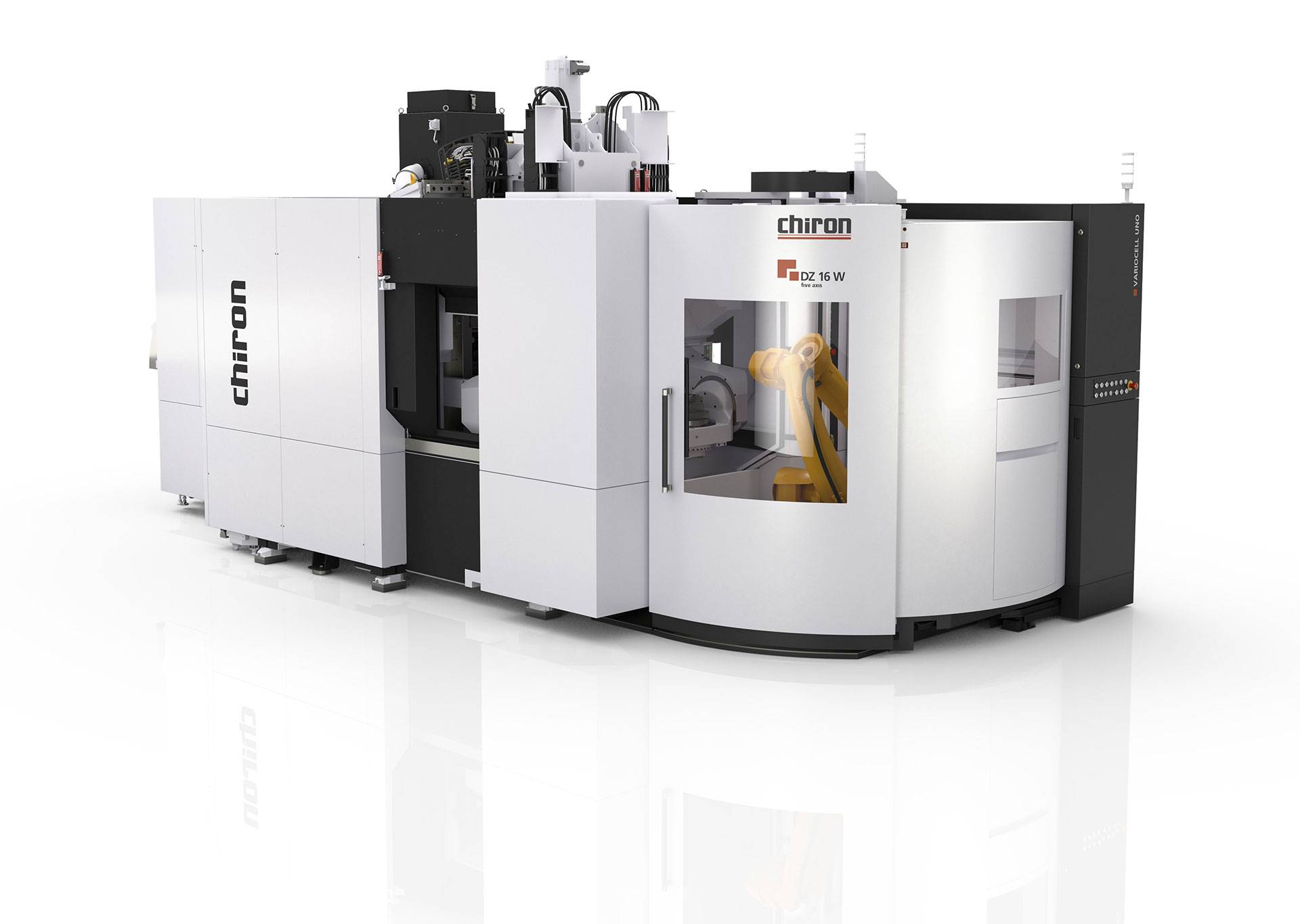 Zur «Open House Online» zeigte Chiron die Baureihe 16 erstmals mit der kompakten Automationseinheit VariocellUno, bestehend aus Handlingroboter und Werkstückspeicher. Die neue Variante wurde für einen besonders produktiven, hauptzeitparallelen Austausch von Roh- und Fertigteilpaletten in der Serienproduktion konzipiert und erlaubt die Fertigung von vielen Werkstücken in sehr kurzen Taktzeiten. Das Werkstückhandling übernimmt bei der «DZ 16 W» ein 6-Achs-Roboter. Zahlreiche standardisierte Optionen unterstützen dabei, projektspezifische Anforderungen auszulegen und umzusetzen.