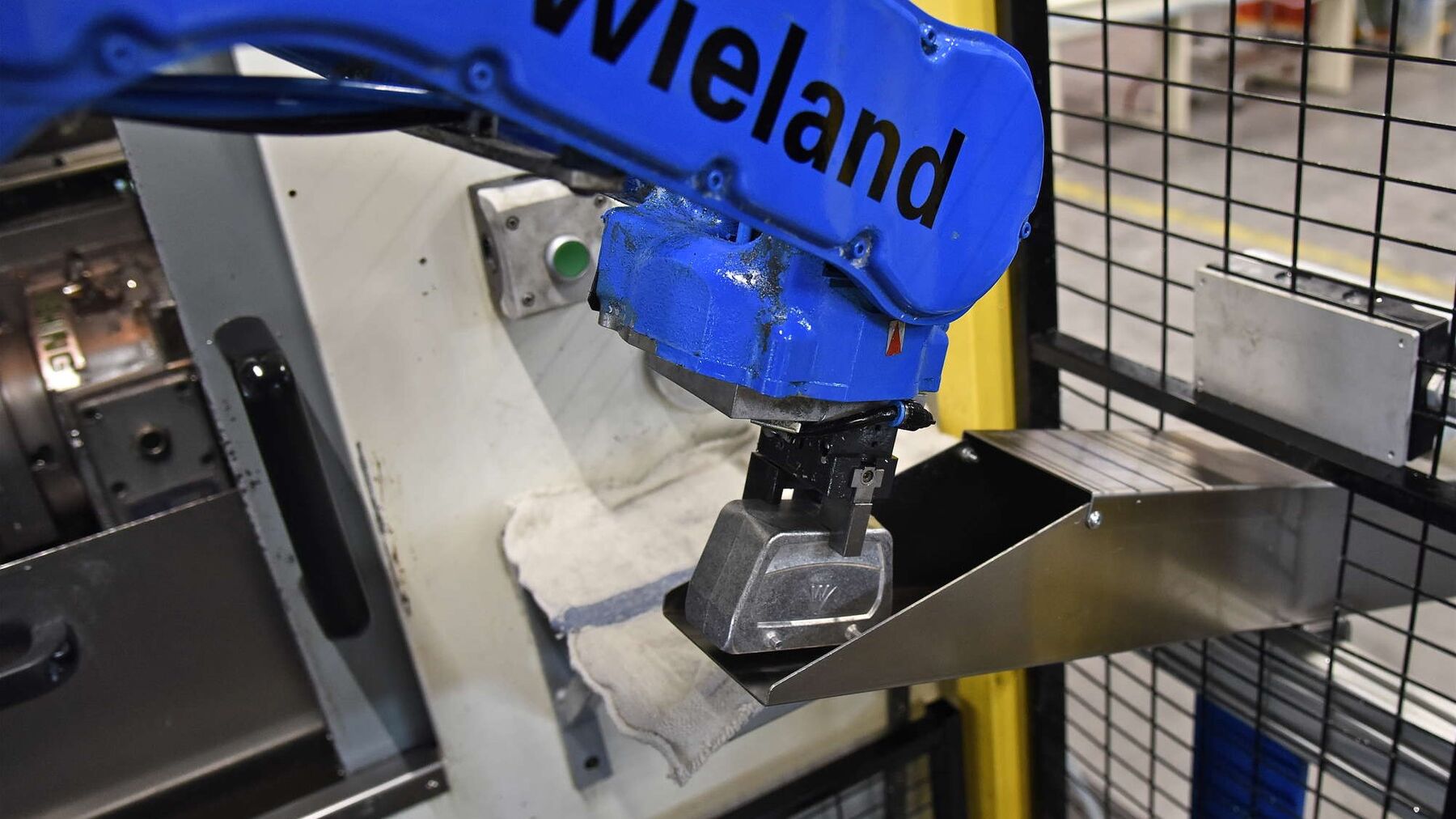 Jürgen Eisinger ist mit dieser Lösung überaus zufrieden: «Was uns besonders am Herzen liegt, ist die Prozesssicherheit von Zuführung und Robotik. Störungen oder gar längere Ausfälle kennen wir an dieser automatisierten Bearbeitungsmaschine nicht. Zudem setzt die Anlage Massstäbe hinsichtlich der Taktzeiten, die bei vier Teilen pro Minute liegt.» Und auch die erreichbare Autonomie, die je nach Teilevariante einige Stunden betragen kann, begeistert die Wieland-Mannschaft. Ausschlaggebend für einen möglichst langen autonomen Betrieb sind die maximal mögliche Bevorratung von Rohteilen durch das Zuführsystem sowie die Bereitstellung der maximalen Anzahl an leeren Metallbehältern im System.