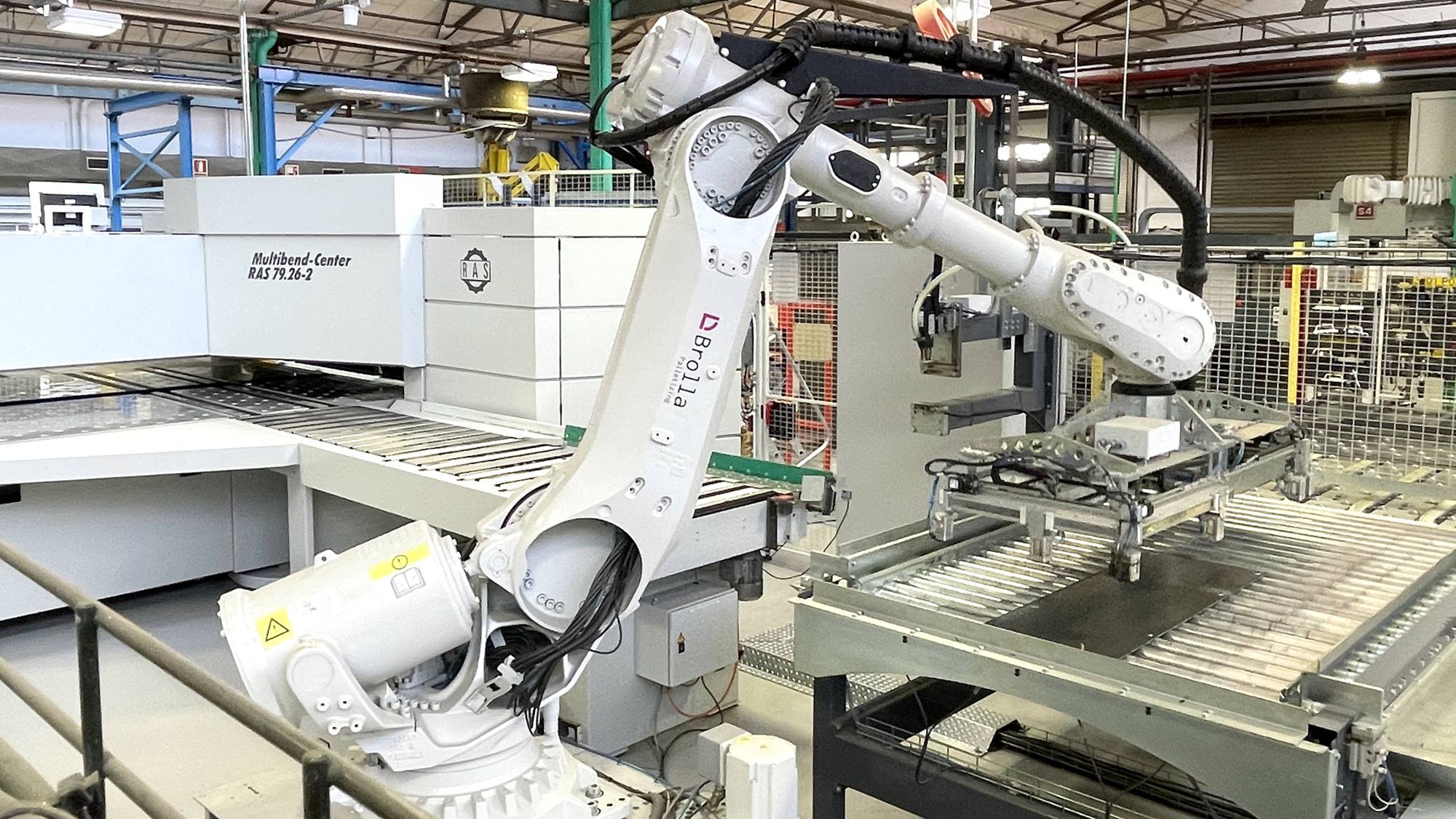 Heute produziert das spanische Unternehmen die Oberteile und Wandelemente der Elektroschränke, sowie die Montageplatten auf einer Pivatic-RAS-Linie. Alle 49 Sekunden entnimmt ein Entladeroboter eine Montageplatte am Auslauf der Produktionsstrasse und stapelt sie ab. Bei weniger komplexen Teilen sind die Zykluszeiten sogar noch geringer.