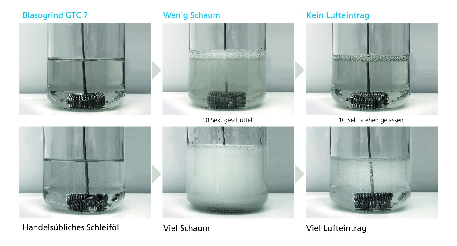 Auch das Schleiföl Blasogrind GTC 7 wird auf der Messe vorgestellt. Dieses bietet schnellen Luftaustrag für eine optimale Kühlung und ist sowohl für das Werkzeugschleifen wie auch das Profil- und Tiefgangschleifen geeignet.