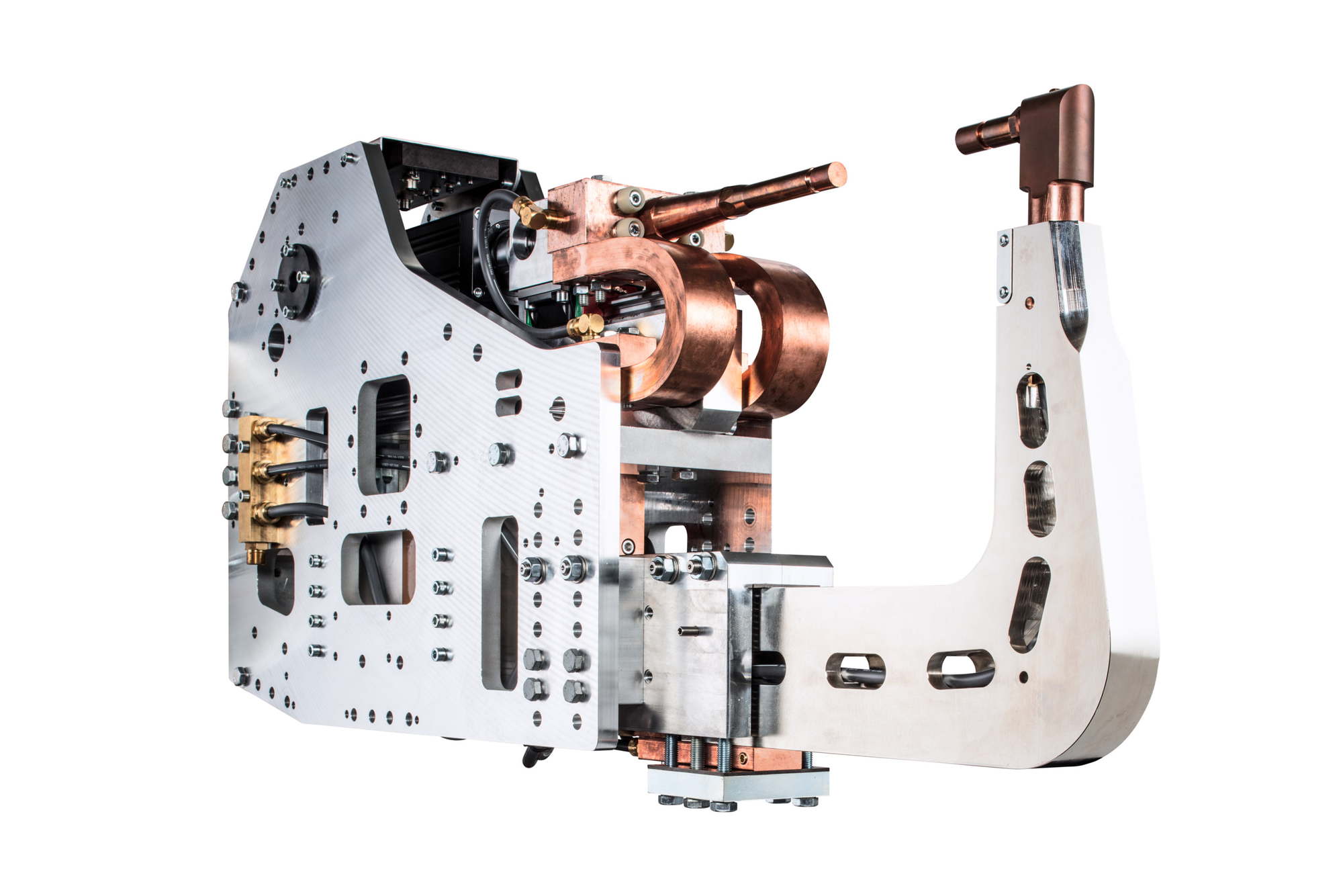 Die DeltaCon-Zangen sind modular aufgebaut und verfügen sowohl in der X- als auch in der C-Geometrie über die gleichen Hauptkomponenten. Damit können Benutzer flexibel eine Vielzahl von Schweissaufgaben lösen, ohne teure Lagerhaltungskosten für verschiedene Bauteile. Ihre schmale Bauweise stellt zudem eine gute Zugänglichkeit sicher: Auf seitlich abstehende Teile wurde komplett verzichtet, und alle Schläuche und Kabel verlaufen gut geschützt innerhalb des Zangenkörpers. Der Transformator ist bereits im Grundkörper integriert, besitzt einen eigenen Kühlkreis und ist für alle Aluminium-Anwendungen geeignet. Die einzelnen Baugruppen lassen sich dank ihrer durchdachten Anordnung bei Montage und Service einfach ein- und ausbauen. Das reduziert Stillstandzeiten auf ein Minimum und ermöglicht eine hohe Produktivität. Anwender können die DeltaCon-Zangen universell an verschiedene Robotertypen anbinden.
