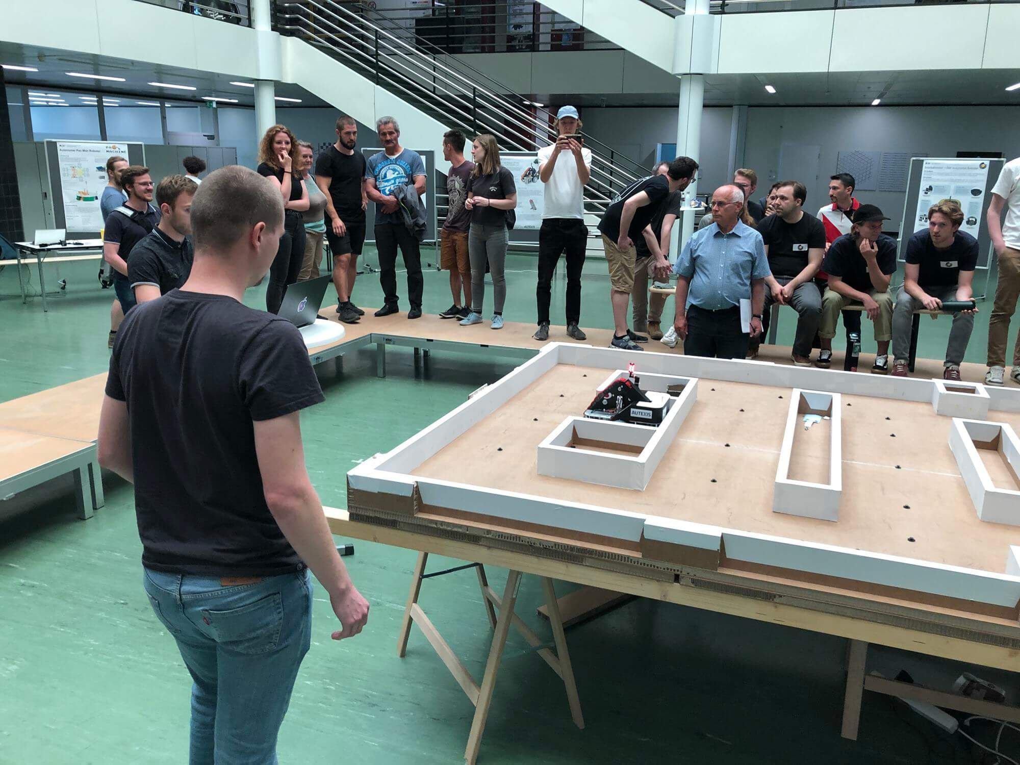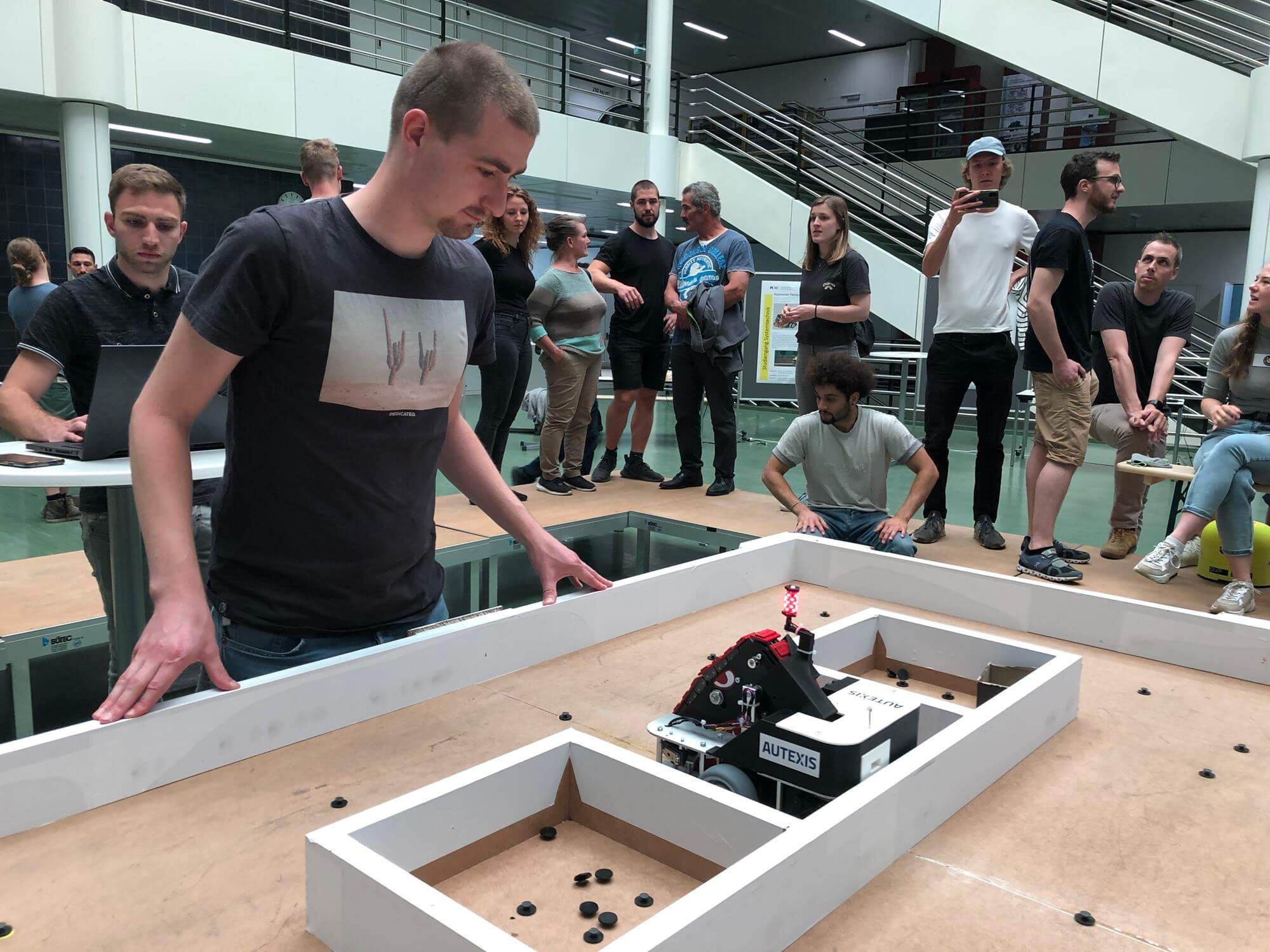 Der Recherche schliesst sich eine vertiefende Anforderungsanalyse an. Die Studierenden müssen also überprüfen, was die Spielregeln vorgeben und wo sie bei der Entwicklung frei sind. Daraus leiten sie schliesslich ihre Lösung ab, indem sie beispielsweise die verschiedenen Varianten von Sensoren und Antrieben gegenüberstellen. Das machen sie zum grössten Teil im ersten Semester, wo sie neben dem Planen unter anderem regelungstechnische Dinge lernen.