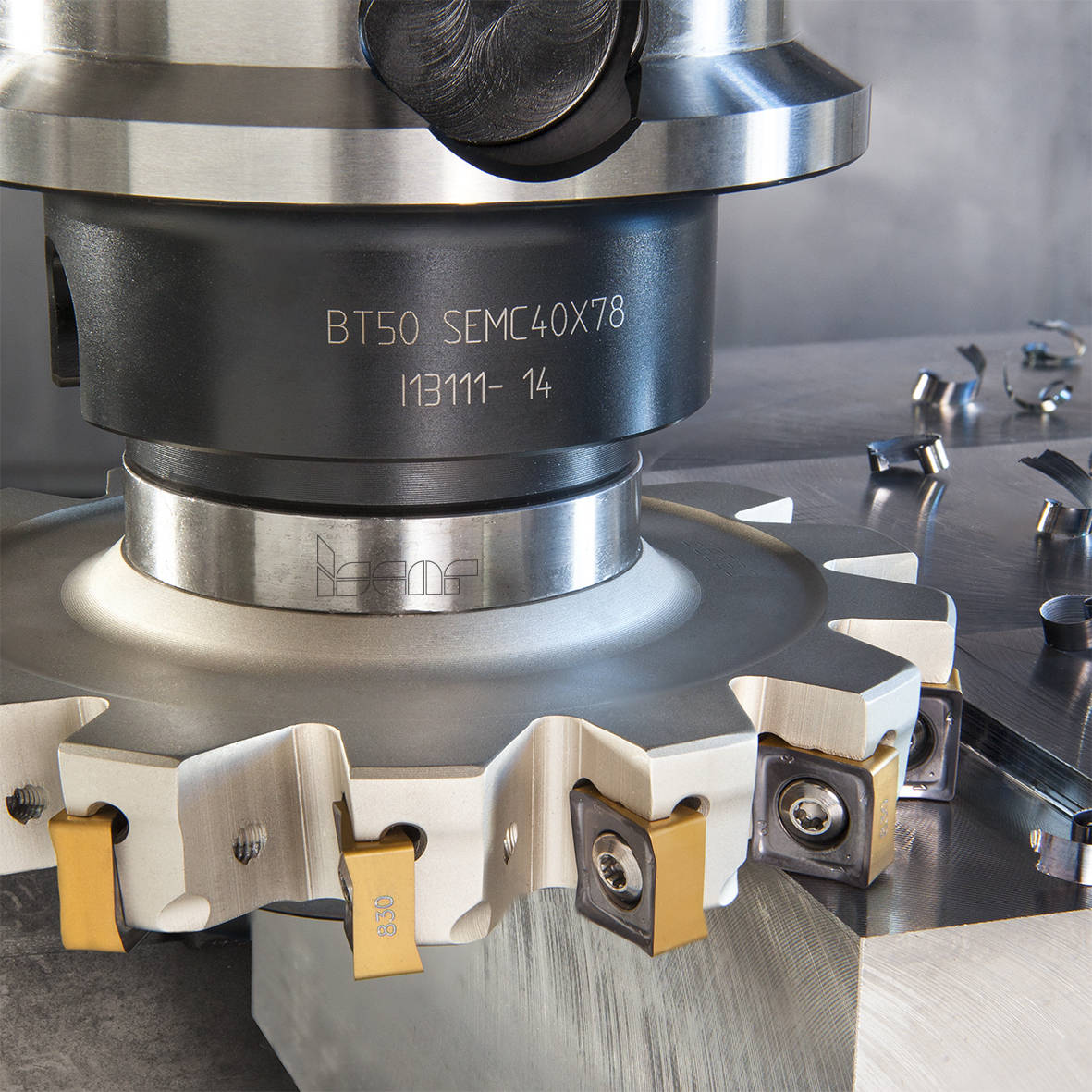 Die Helido 890-Linie verfügt über 88-Grad-Planfräser mit doppelseitigen Wendeschneidplatten. Diese Werkzeuge sind besonders für das Fräsen einer Fläche in der Nähe von Schultern geeignet und bieten einen wirtschaftlichen Vorteil: Die quadratischen Wendeschneidplatten haben acht nutzbare Schneidkanten für eine Schnitttiefe bis zu neun Millimeter.