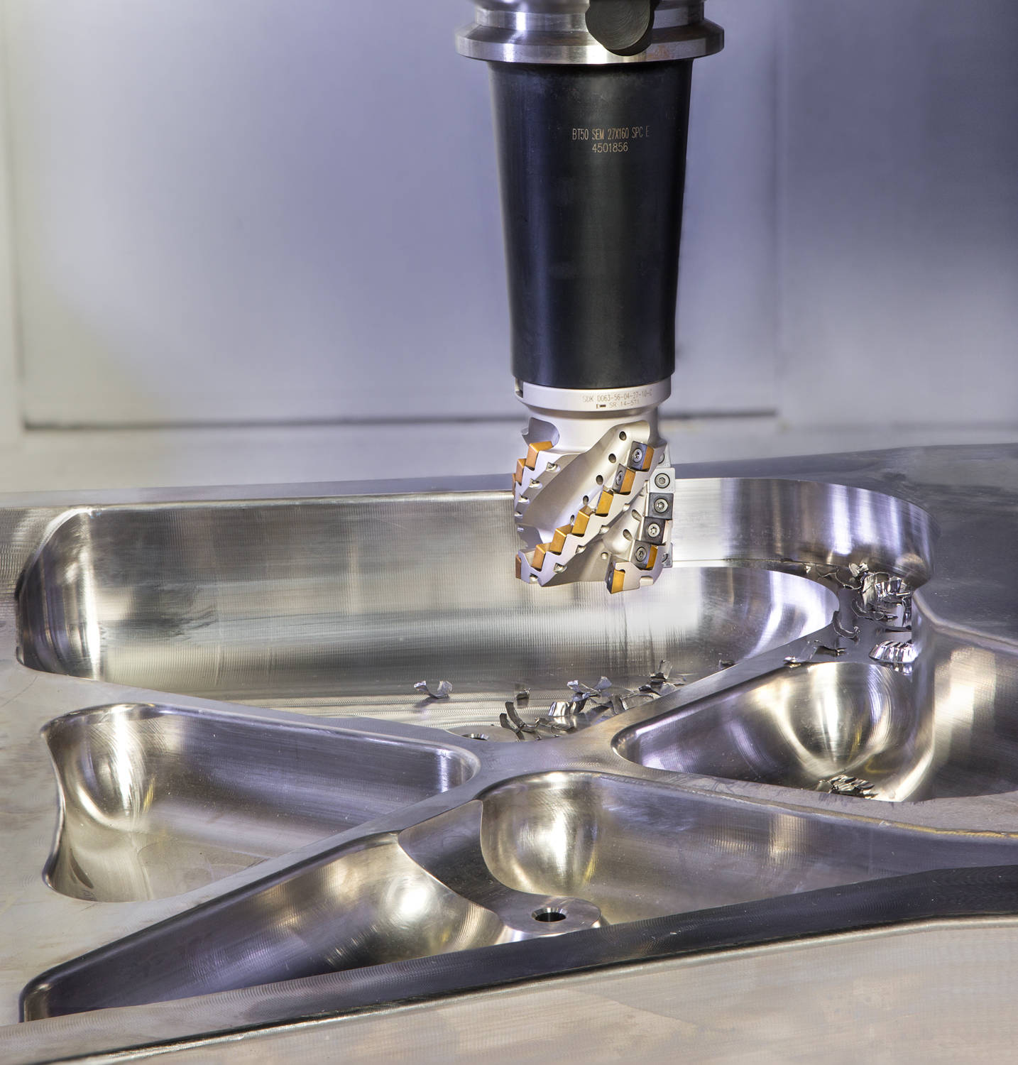 Bild 3: Hochvorschubfräser kommen hauptsächlich beim Schruppen von Planflächen, Kavitäten und 3D-Oberflächen zum Einsatz.