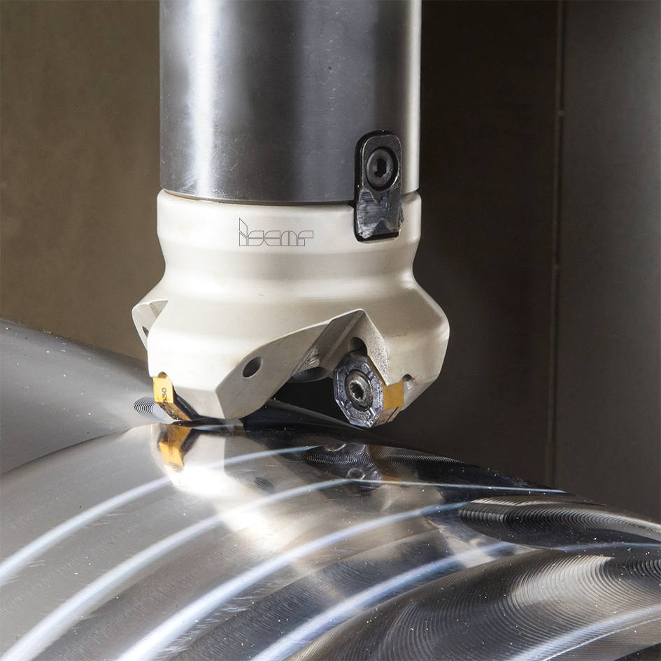 Das Hochvorschubfräsen setzt Werkzeugmaschinen mit entsprechender Dynamik voraus. Hersteller von Grossteilen verfügen oft über schwere, leistungsstarke, aber langsame Maschinen, die nicht zum Hochvorschub-Planfräsen geeignet sind. Für diese Kunden entwickelte Iscar Fräser für den mittleren Vorschubbereich (MF). Im Vergleich zu HFM weisen MF-Fräser einen höheren Anstellwinkel auf; sie bewegen sich langsamer, bearbeiten jedoch grössere Schnitttiefen und benötigen mehr Maschinenleistung.