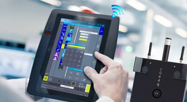 Das mobile Bedienpanel HGW 1033 kommt ganz ohne Kabel aus und beseitigt somit eine potenzielle Stolperfalle. Neben dem 10,1-Zoll-Multitouchscreen und einem integrierten Akku-Pack verfügt das Bediengerät über ein Standard-WLAN-Interface. Die redundante Datenübertragung auf separaten Frequenzbändern (2,4 und 5 GHz) minimiert die Wahrscheinlichkeit von Übertragungsfehlern und erhöht somit die Verfügbarkeit des Funknetzes.