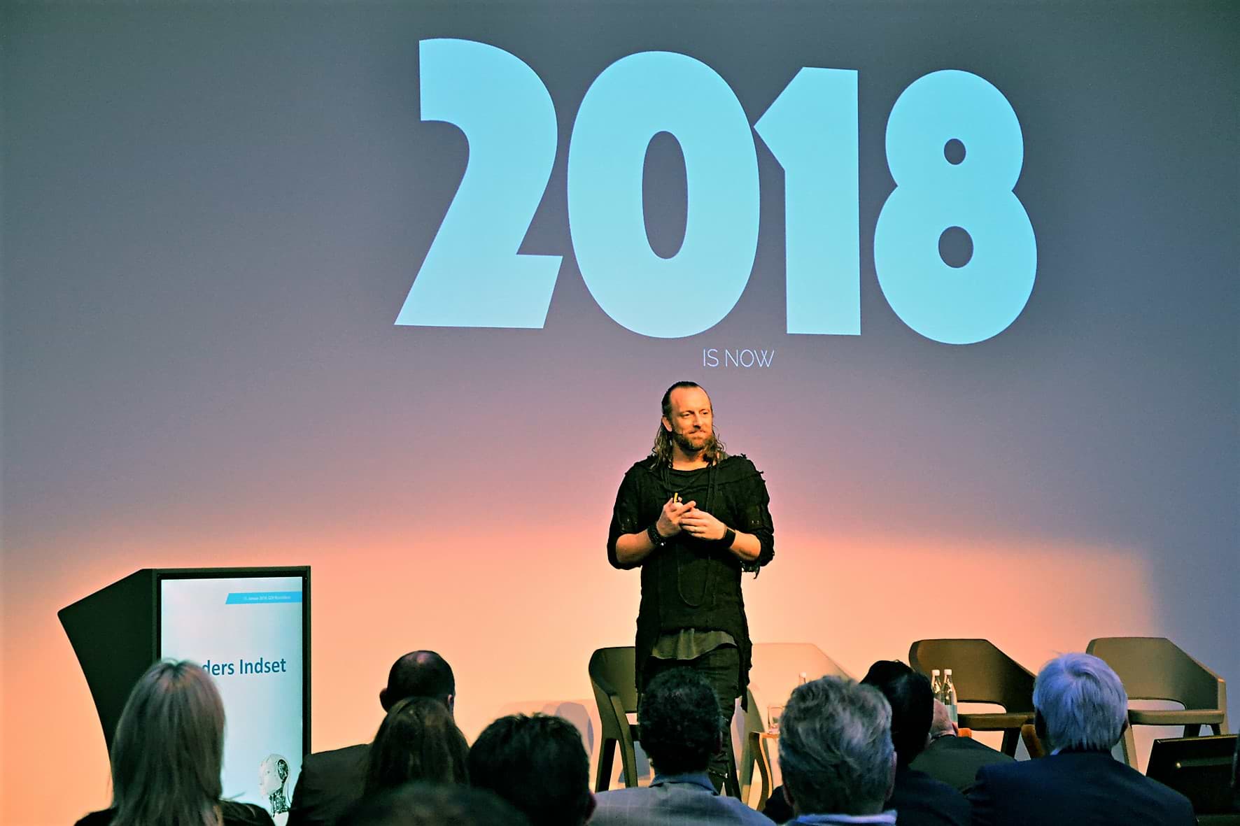 Zum Schluss der Tagung wurde wieder ein Spiegel vor das Gesicht der ganzen Welt gehalten – von einem Philosophen mit scharfer Beobachtungsgabe. Anders Indset, auch bekannt als Rock’n’Roll-Platon, sagte, dass uns der Kompass fehle, eine gemeinsam einzuschlagende Richtung. Die Komplexität der Welt werde durch den Technologiewandel sichtbar und verunsichere und überfordere uns. Wir wüssten keine zehn Adjektive über uns selbst aufzuzählen – wir könnten unser wirkliches Ich nicht ergreifen. Nur Leere sei da. Und die Technologie könne uns dabei nicht helfen.