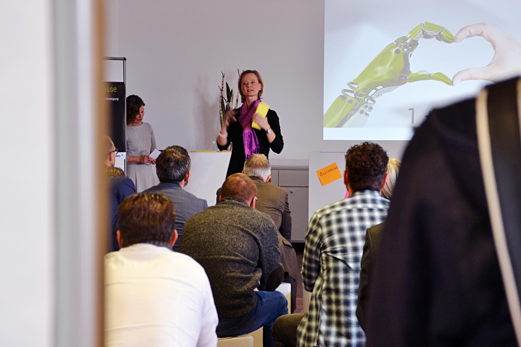 Die Digitalisierung verändert Geschäftsmodelle und verschiebt die Handlungsgrenzen der Industrie. Wie schafft man Raum für neue Ideen und Konzepte in einem traditionellen Umfeld? Eva Richterich teilte ihre mit Ricolab gesammelten Erfahrungen dem neugierigen Publikum mit und forderte dieses auf, verstärkt kundenzentriert und zukunftsorientiert zu denken.
