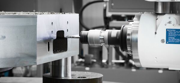 This is where double-C-axis interpolation comes into play. The linear Y-axis is thus achieved using simultaneous interpolation of the round table C-axis and the CY-axis. It is certainly not fitting a square peg into a round hole, but the method does have a sense of mathematical wizardry about it. Dr Queins explains: "The intelligent interplay of the C- and CY-axes transforms two circular movements into one linear motion. When combined with the X- and Z-axes, a lateral surface on a workpiece, for instance, can be milled off-centre thanks to four-axis interpolation."