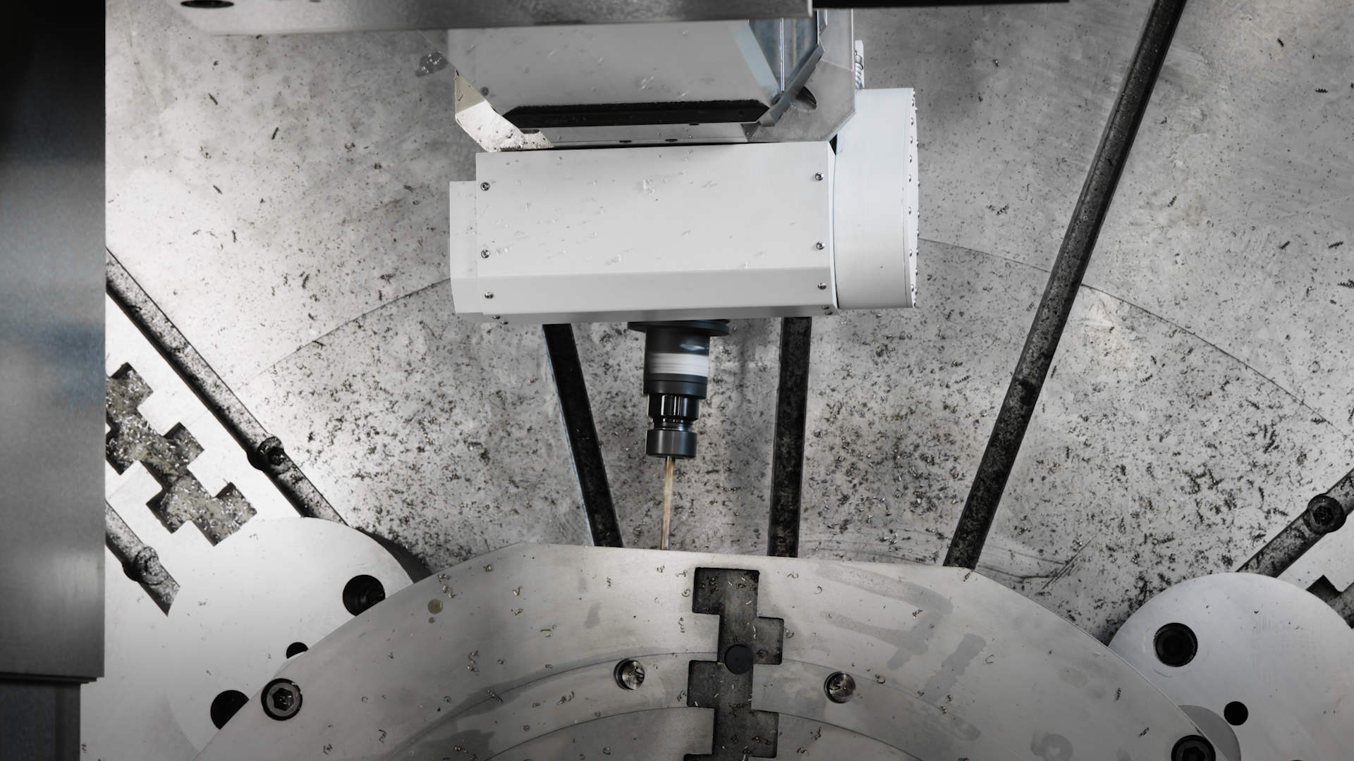 Hier kommt die Doppel-C-Achsen-Interpolation ins Spiel. Mit ihr lässt sich mithilfe simultaner Interpolation der C-Achse des Rundtisches und der CY-Achse eine lineare Y-Achse realisieren. Es ist zwar keine Quadratur des Kreises, aber die Methode klingt schon etwas nach mathematischer Zauberei. Dr. Queins: «Das intelligente Zusammenspiel von C- und CY-Achse verwandelt zwei Kreisbewegungen in eine Linearbewegung. In Verbindung mit der X- und Z-Achse lässt sich so zum Beispiel eine seitliche Fläche an einem Werkstück dank 4-Achsen-Interpolation aussermittig fräsen.»