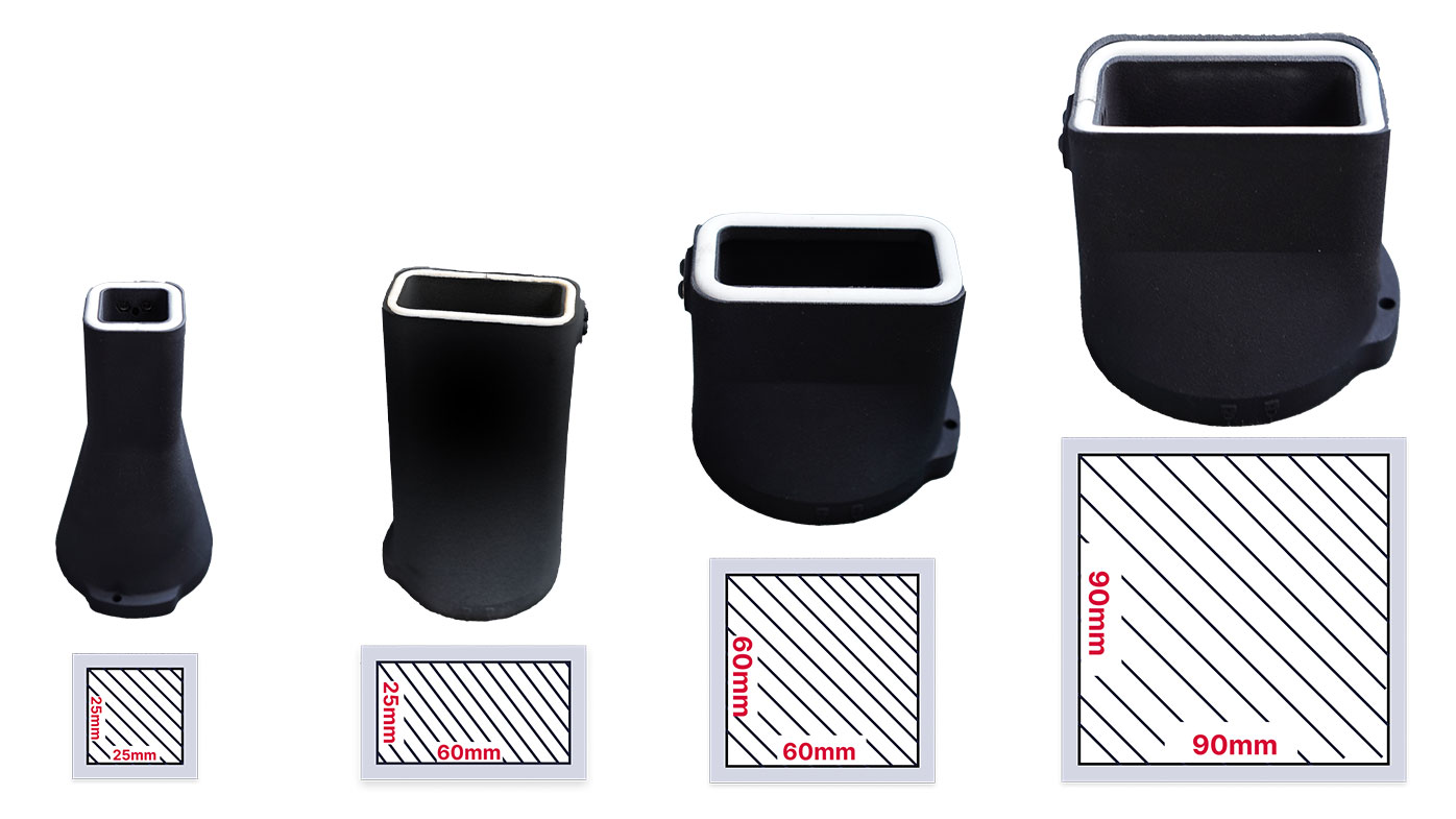 Dank seiner vielseitigen Aufsätze können Werkstücke mit beliebigen Geometrien mühelos markiert werden. Standardmässig stehen vier verschiedene Aufsätze für die Beschriftung zur Verfügung. Die Aufsätze lassen sich durch das Vierteldrehsystem ganz einfach auswechseln. Je nach gewünschter Beschriftungsfläche, können auch kundenspezifische Aufsätze bestellt werden.