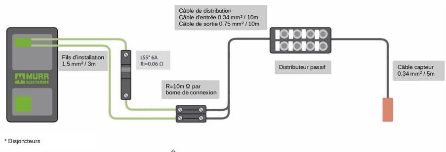 Un exemple pratique de calcul de la résistance de boucle d’un câble de capteur de 5 m de long avec une section de fil de 0,34 mm2 démontre que cette valeur de résistance est irréaliste. Sa résistance est obtenue par la formule R = ρ x l / A, où l est multiplié par deux en raison des lignes d’aller et de retour.