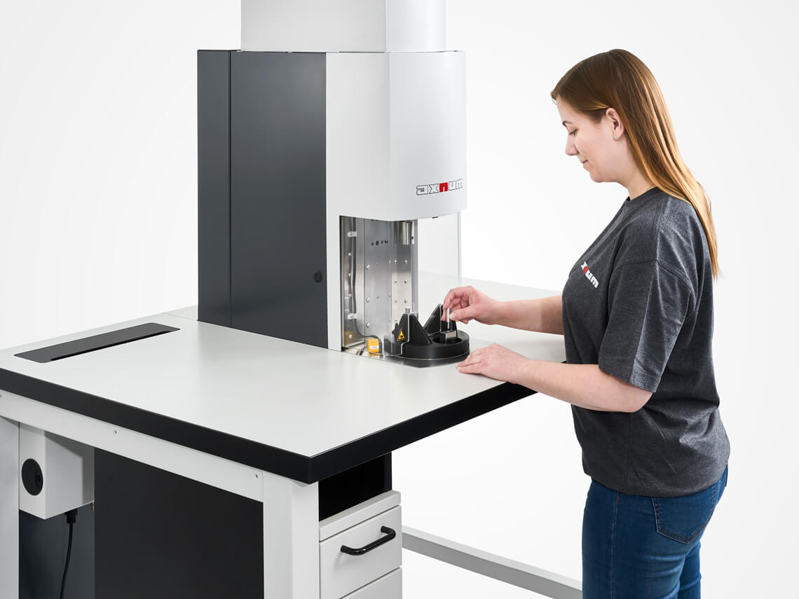 - 2-Positionen-Drehtisch: Dieser vereint zeitsparende Beladung und ergonomische Arbeitsplatzgestaltung.