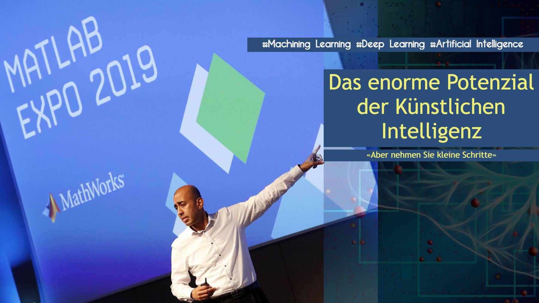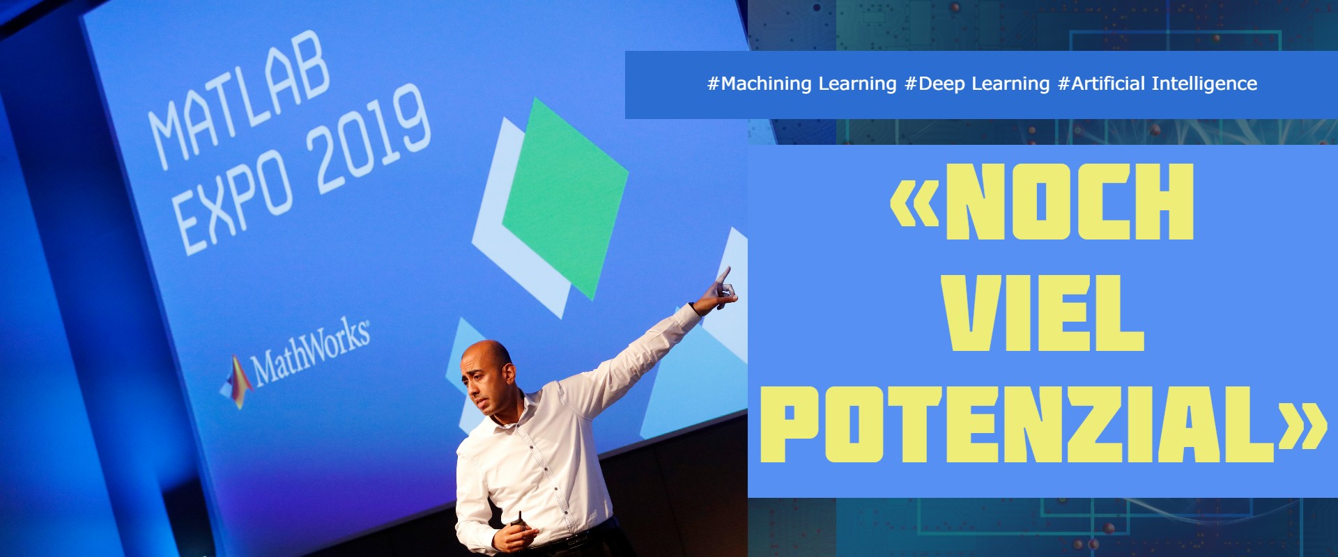 Wie kann man Künstliche Intelligenz für sich und seine Produkte nutzen? Diese Frage beschäftigt momentan viele Firmen. Die Matlab Expo 2019 in Bern gab mit einem imposanten Aufgebot an Rednern Erfahrungen, Entwicklungstipps, Erklärungen und ein enorm breites Praxiswissen an die Teilnehmer weiter. Eine Multimediastory mit den wichtigsten Statements rund um KI, Machining Learning und Artificial Intelligence.
