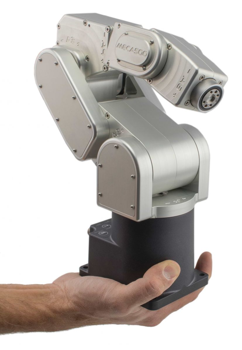 Der Meca500 ist einer der wenigen Industrieroboter mit einem Embedded-Controller im Sockel, und der einzige Roboterarm, der in die Handfläche eines Menschen passt. Der Roboter kann Nutzlasten von bis zu 500 g bei hohen Geschwindigkeiten und in einer unvergleichlichen Präzision von 0,005 mm positionieren.