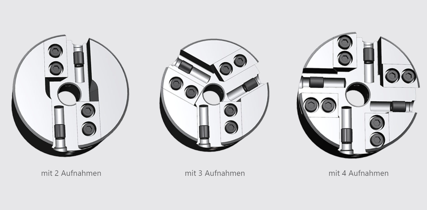 Je nachdem wie die Anforderungen Ihres Werkstücks sind, entscheidet ein Gühring Konstrukteur, welcher Werkzeugkopf diesen am besten gerecht wird. So sind Werkzeugköpfe mit zwei, drei oder vier Aufnahmen für die Klemmhalter möglich. Es lassen sich Werkstücke mit Durchmessern bis 180 Millimeter bearbeiten. Auch die Schnittstelle zur Maschine kann Gühring passend und flexibel gestalten.