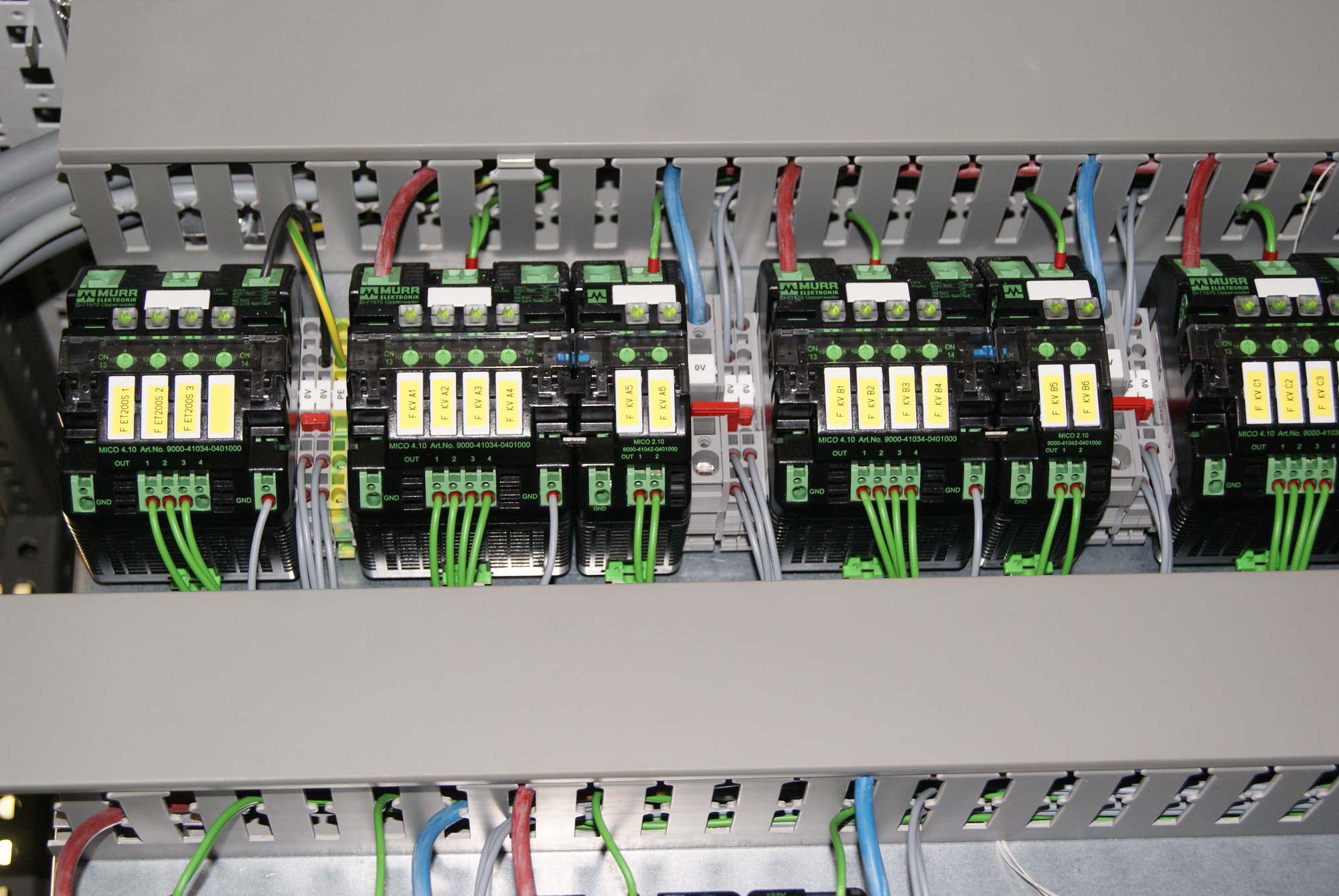 Die selektive Kanalüberwachung war aber nur ein Argument, das für MICO sprach. Mit einer Baubreite von 72 mm war das Gerät im Vergleich zu den zuvor verwendeten vier Leitungsschutzschaltern mit je einem Signalkontakt bereits um 36 mm schlanker – und wie die Erfahrung zeigte, funktionierte dieser Sicherungsansatz in Kombination mit einer elektronisch geregelten Stromversorgung überhaupt nicht! Also waren die bis anhin verwendeten 108 mm auf der Hutschiene ohnehin für die Katz.