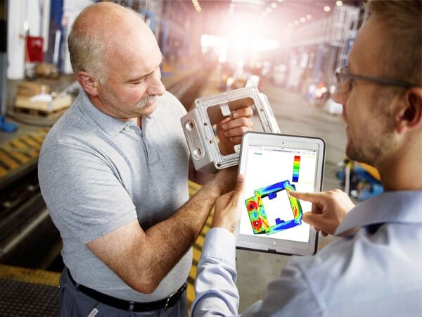 Bei der Leistungsoptimierung des Teils greift der Konstrukteur auf ein skalierbares CAE-Portfolio zurück. Es können zum einen konstruktionsnahe Berechnungen, wie linear statische und Lebensdauer-Analysen durchgeführt werden, zum anderen steht die volle Bandbreite des Simcenter-Portfolios in Verbindung mit NX Nastran zur Verfügung. Diese mächtigen Berechnungswerkzeuge ermöglichen multidisziplinäre Berechnungen wie Vibrationsverhalten, Akustik, Mehrkörpersimulation, Strömung und Wärmeverteilung. So kann der digitale Zwilling unter realen Bedingungen getestet werden. Dies ist gerade bei völlig neuen Produktalternativen unumgänglich.