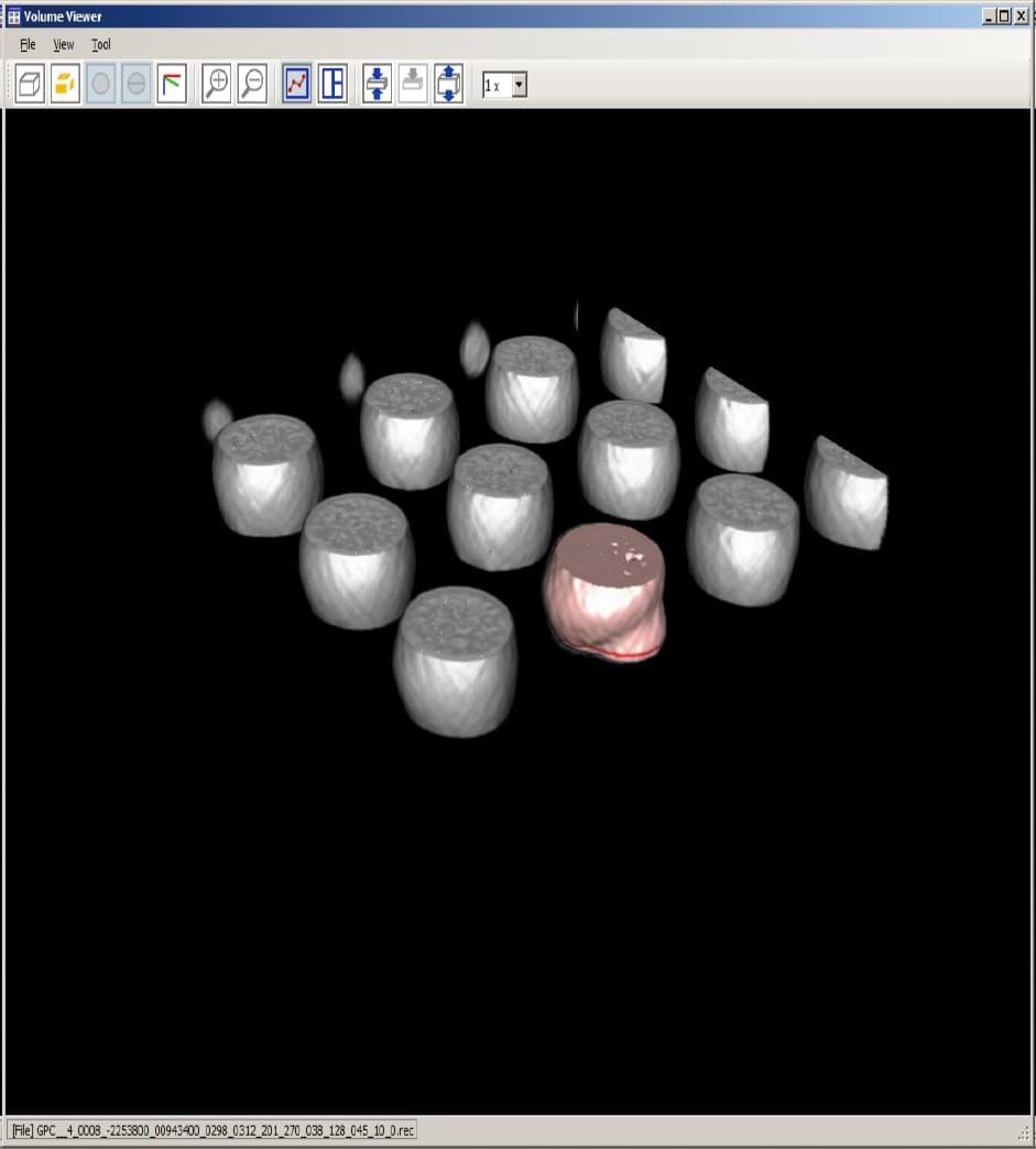 Bei der Softwareverarbeitung ist mit der 3D-CT-Technik, durch die gleichzeitige Verarbeitung der Bildgebung des Projektionsbildes, wie auch durch die Rekonstruktion des 3D-Bildes (Grafikprozessor [GPU]), eine hohe Geschwindigkeit sowie eine hohe Genauigkeit erreicht worden. Dieses wiederum hat die automatische Erkennung von Head-in-Pillow-Fehlern (Nichtbenetzen zwischen der Lotpaste und der Lotkugel) ermöglicht, wie in Foto 1 und Foto 2 dargestellt. Hierbei handelt es sich um einen typischer Fehler bei Kugelgitteranordnungen (BGAs) in der Inline-Inspektion.
