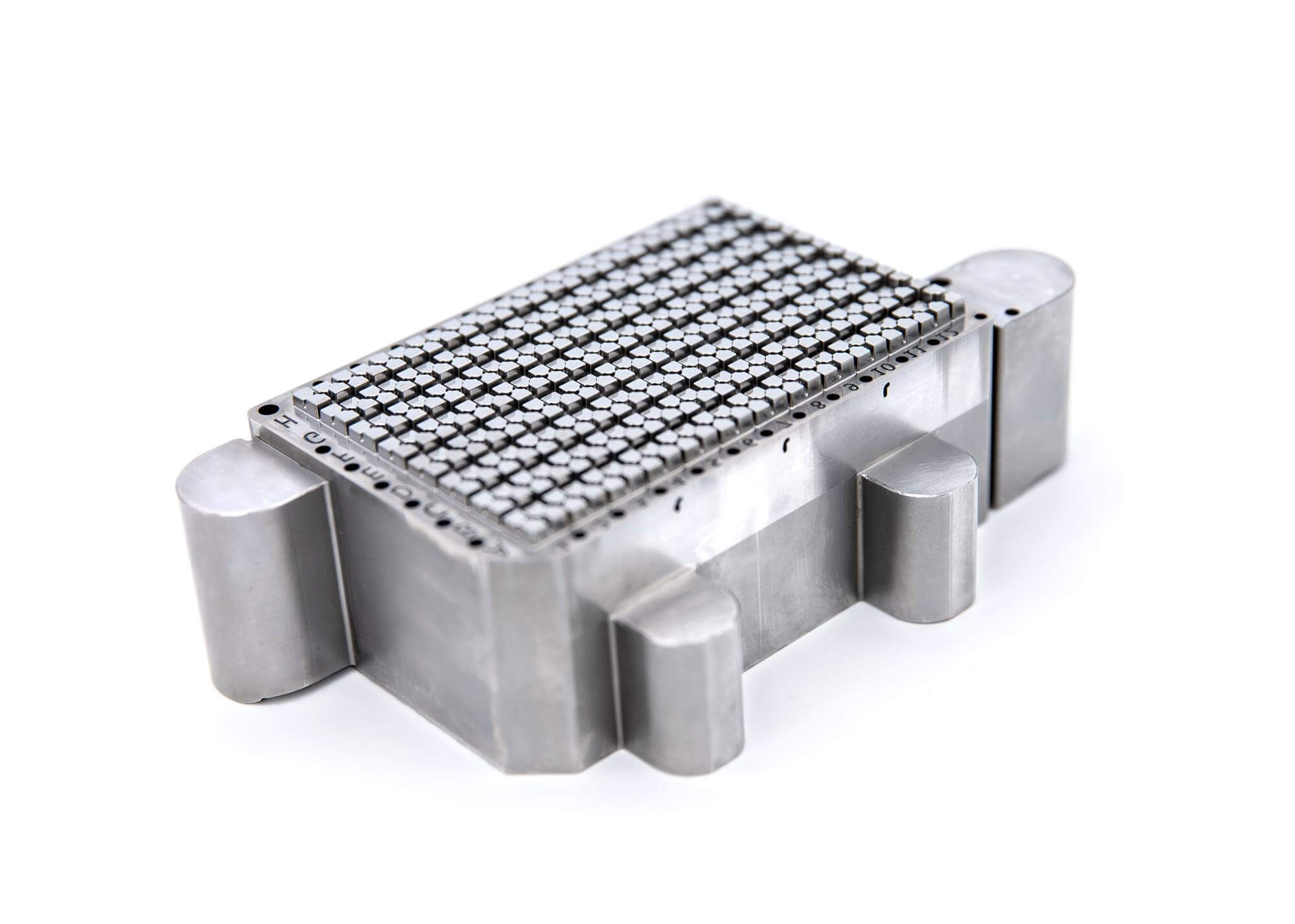Abschliessend weisen die Ostwestfalen noch auf das Thema Schwesterwerkzeuge hin, das alleine schon wegen der 384 Messfelder eine wichtige Rolle gespielt hat: Die Röders-Maschine hat eine spezielle Messvorrichtung, sodass alle Werkzeuge exakt die gleiche Länge haben. Nur so konnten die 5-µm-Toleranzen eingehalten werden. 710 Stunden wurden insgesamt benötigt, um dieses komplexe Werkzeug zu fräsen. «Trotz der vielen Herausforderungen war das SpeChip-Projekt ein toller Erfolg, das wir ohne die Moldino-Werkzeuge und vor allem die Experten von Moldino nicht gestemmt hätten», zieht Jakob Kehler ein positives Fazit. «Früher wäre so ein Werkzeug mit Grafit senkerodiert und die rauen Funktionsflächen anschliessend per Hand zum Preis von rund 14‘000 Euro durch einen Dienstleister poliert worden. So hätten wir allerdings nie die hohen Genauigkeiten erzielt, die wir heute durch das Fräsen erreichen.»
