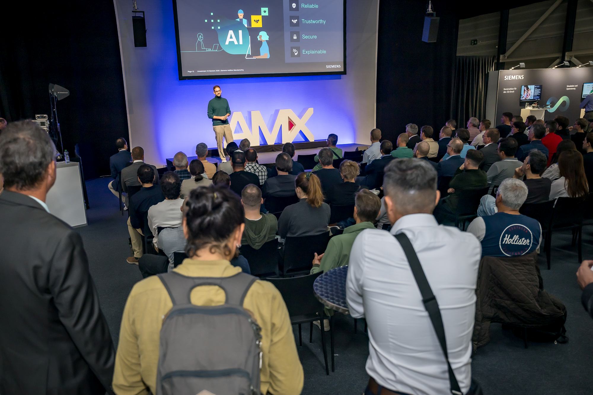 An zwei Symposien konnten sich die Besuchenden über aktuelle Themen informieren. In 50 Referaten und Podiumsdiskussionen ging es um Trends und Herausforderungen in der additiven Fertigung und Medizintechnik. Besonders gefragt waren die Blöcke zu künstlicher Intelligenz und Nachhaltigkeit. Auch die Beiträge zur additiven Fertigung in der Medizintechnik waren gut besucht. Ergänzend gab es das neue Format «Meet the Speakers». Hier konnten sich die Teilnehmenden nach den Programmpunkten direkt mit den Referierenden austauschen. «Mit den Symposien wollten wir nicht nur informieren, sondern den Dialog fördern. Das neue Format hat diesen Austausch nochmals intensiviert», resümiert Sara Bussmann.