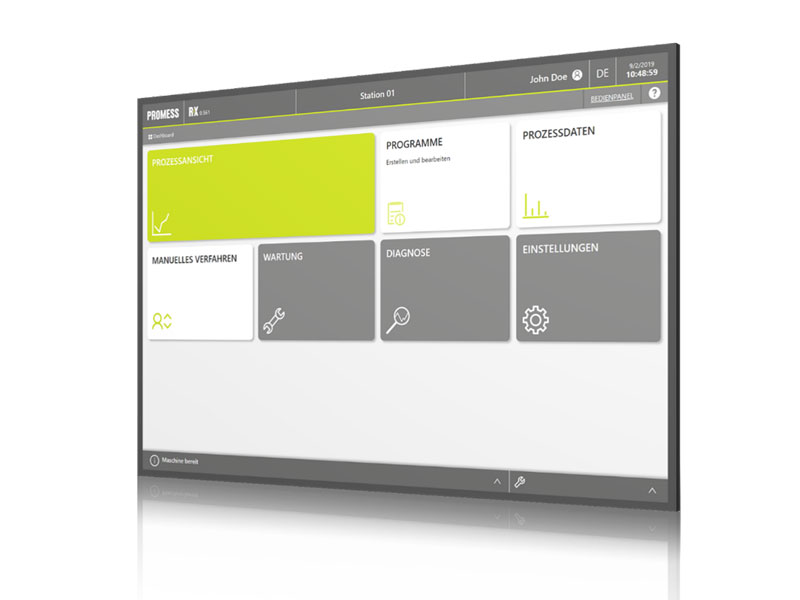 Die Software RX bietet ein durchgängiges Konzept mit durchdachter Benutzerbegleitung zur intuitiven Bedienung via Web-Interface. Über das übersichtliche Dashboard kann der Benutzer seinen Prozess sofort starten. Programmierkenntnisse sind nicht erforderlich. Während der Fügesequenzerstellung wird der Anwender durch eine Eingabevalidierung und eine integrierte Onlinehilfe unterstützen. Die Bedienung über Web-Interface bietet einen flexiblen Zugriff auf das Fügesystem, unabhängig von Zeit, Ort, Betriebssystem oder Endgerät.
