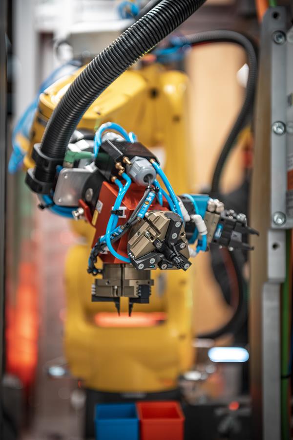 Bis zu einem gewissen Bereich kann der Greifer unterschiedliche Stiftdurchmesser handhaben. Kann er das nicht, wechselt der Roboter eigenständig den Greifer aus.
