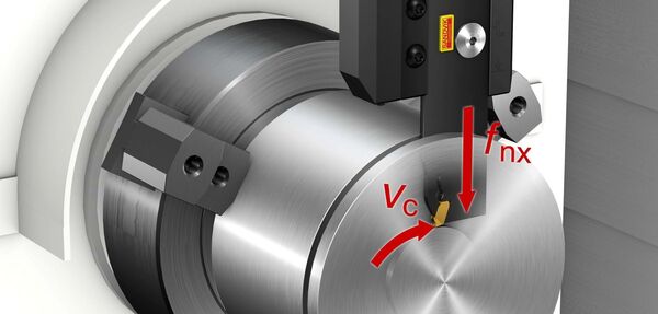 Bei konventionellen Werkzeugkonfigurationen für das Abstechen auf Drehzentren und Multitasking-Maschinen unterliegt die Vorschubbewegung in der XZ-Ebene systembedingten Einschränkungen: Bei Abstechprozessen wird der resultierende Vektor der Schnittkräfte zwangsläufig als Biegelast über den Werkzeugquerschnitt gelenkt, was zu hohen Belastungen und möglichen Verformungen führt.