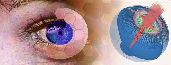 Abbildung eines realen menschlichen Auges überlagert von einem optomechanischen Computermodell. (Bild: Comsol)