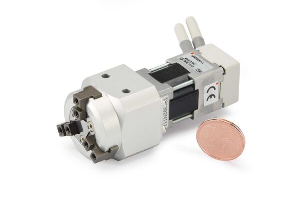 SMC steht für mehr als Pneumatik. Im Portfolio sind auch viele elektrischen Antriebe – zum Beispiele jene in kleiner Baugrösse wie im Bild. Die Kompaktschlitten dieser Serie LES beispielsweise entsprechen – bei einer Baugrösse von 8 – einer Höhe von 35 mm und einem maximalen Hub von 75 mm. (Bild: SMC)