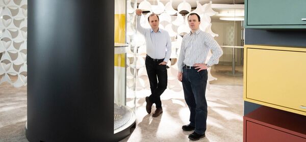 «Wie können wir das Laserschneiden verbessern?» Diese Frage beschäftigte Alexandre Paradzinets (links) und Roland Bader, die Entwickler hinter «TiltPrevention». (Bild: Stefan Jermann)
