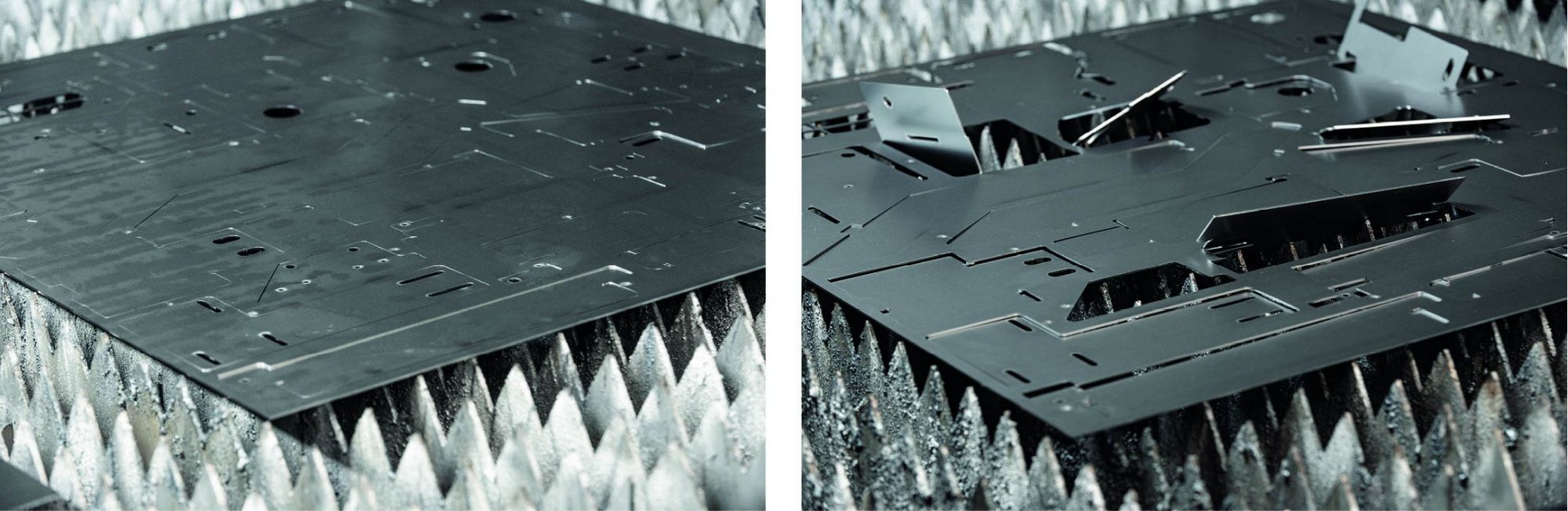 Roland Bader: Für viele Anwender sind Schneidteile, die nach dem Ausschnitt aus der Blechtafel kippen oder aufstehen, ein Problem. Das führt zu Schneidabbruch, Ausschuss und zu Schäden am Schneidkopf. Kippende Teile behindern auch das automatisierte Abräumen der Laserschneidanlage.
