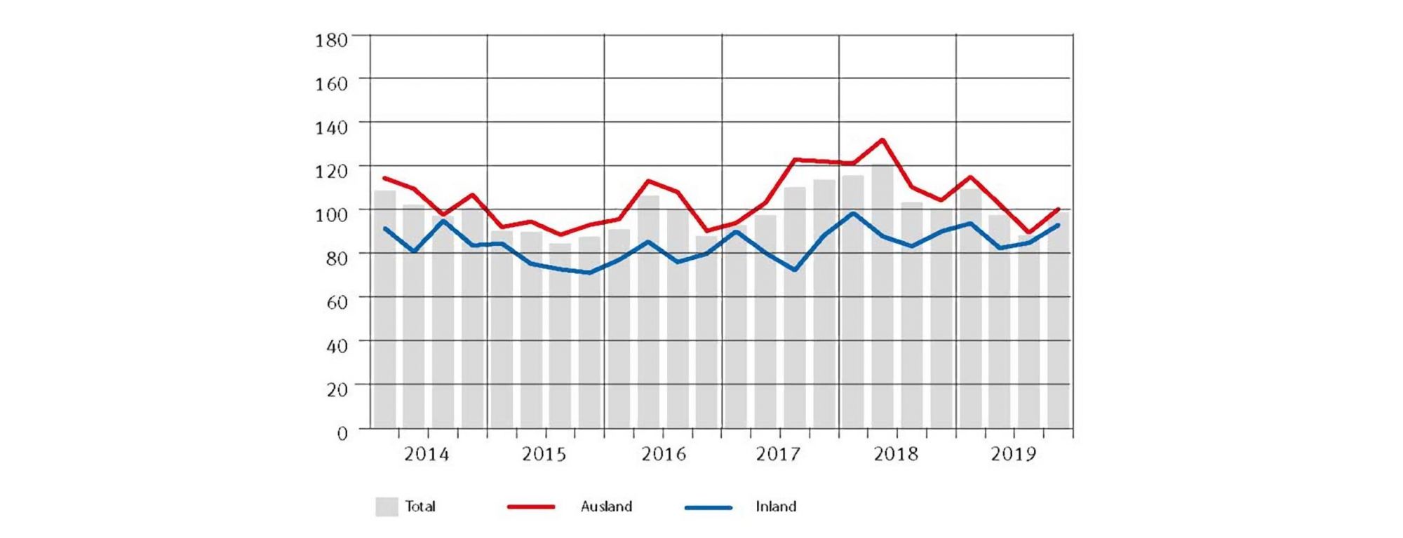 Zudem hat sich die Überbewertung des Schweizer Frankens gegenüber dem Euro 2019 deutlich erhöht und seit Anfang 2020 noch weiter akzentuiert. Das behindert spürbar die Wettbewerbsfähigkeit der MEM-Industrie im wichtigen EU-Markt. Falls die Beeinträchtigungen durch die Corona-Epidemie und das gegenwärtige Ausmass der Überbewertung des Frankens anhalten, wird die Lage für die MEM-Industrie kritisch.