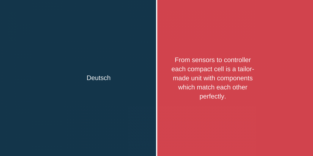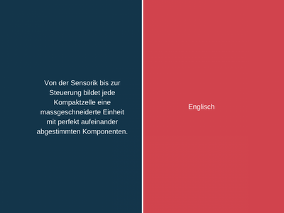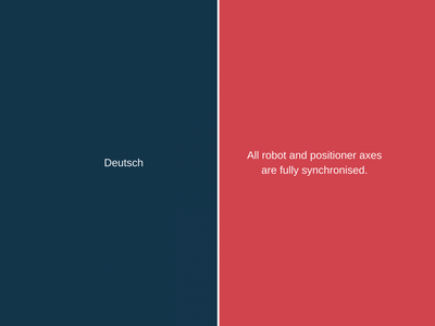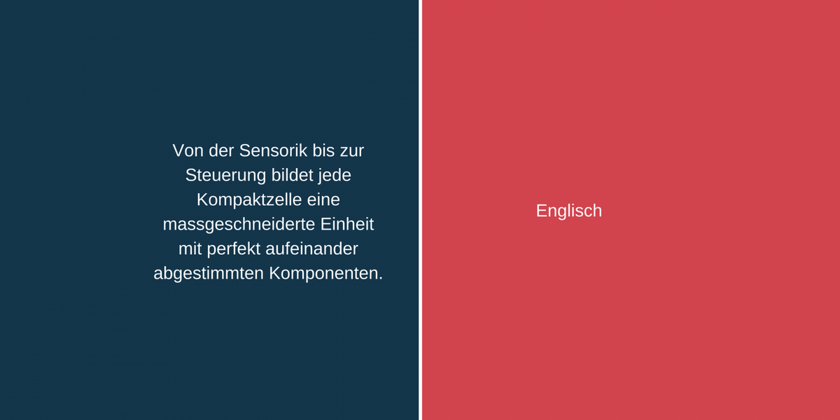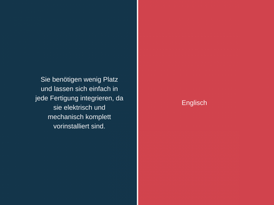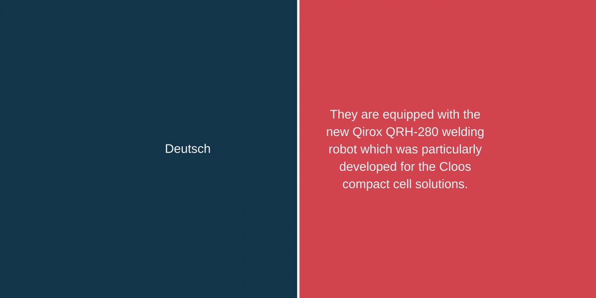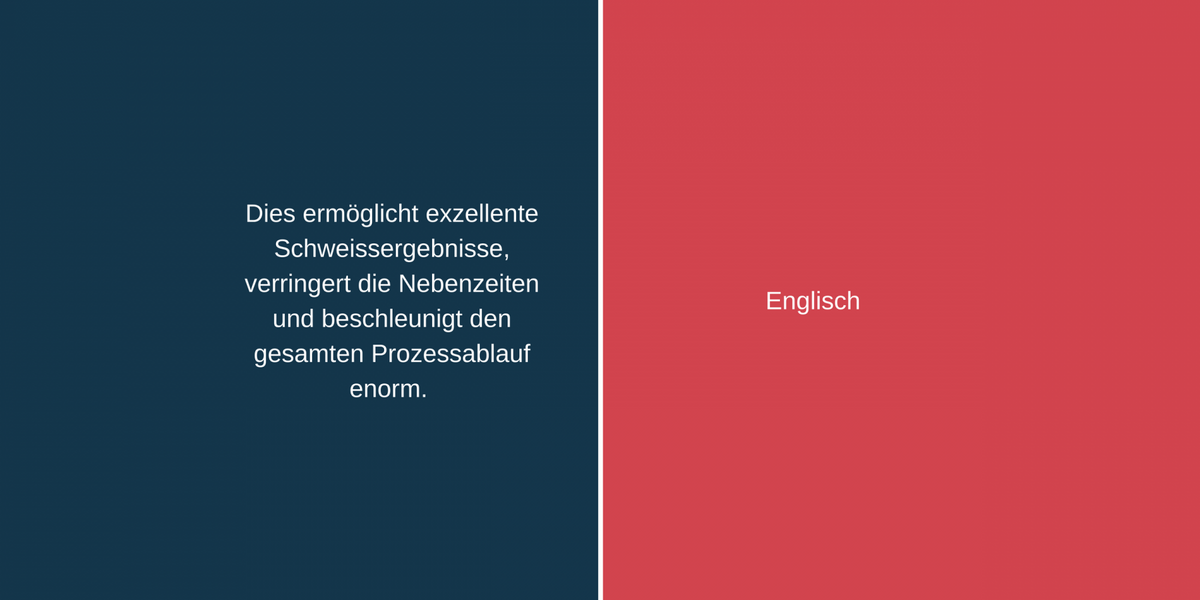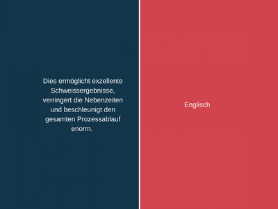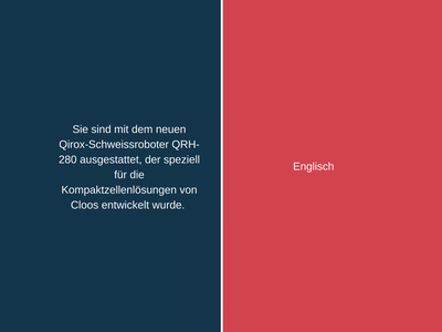 Wie heisst nochmals «massgeschneiderte Einheit» und «verringert die Nebenzeiten» auf Englisch? Bewegen Sie den Schieber nach links oder rechts und wechseln Sie in der folgenden Pressemitteilung von Cloos zwischen englischem und deutschem Fachtext und dem dazugehörigen Fachjargon. Sie können zum Beispiel den deutschen Satz zuerst lesen und sich überlegen, wie Sie ihn übersetzen würden. Dann schauen Sie nach, wie die Firma Cloos den Satz übersetzen liess.