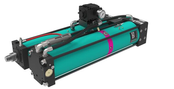 Kompakt: Zylinder und Druckübersetzer nebeneinander angeordnet