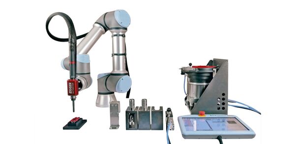 Eine Vielzahl der neuen Anwendungssets, wie z.B. der Pick-&-Place-Schraubsatz von Spatz - Stöger, besteht aus mehreren UR+-zertifizierten Lösungen, die über einen einzigen URCap gesteuert werden. Das Spatz – Stöger-Schraubset enthält sieben verschiedene UR+ Komponenten, die einen automatischen Werkzeugwechsel und eine Zuführung von Verbindungselementen durch ein Pick-&-Place-System ermöglichen.