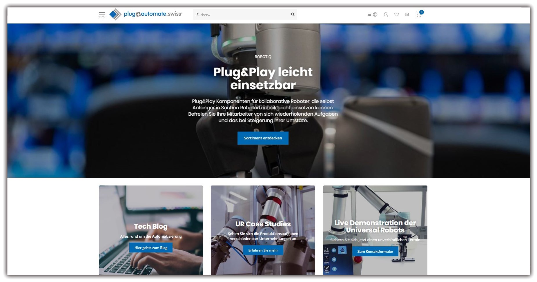Die Idee eines Webshops für Automation war schon länger in unseren Köpfen. Automation rund um kollaborative Roboter wurde in den letzten Jahren immer einfacher und die Angebote immer zahlreicher. Damit wurden sie auch einem breiteren Publikum bekannt. Ganz im Sinne dieses Plug-&-Produce-Ansatzes war nun der Zeitpunkt reif, um unseren Kunden eine neue Plattform zur Beschaffung und Information zu bieten.