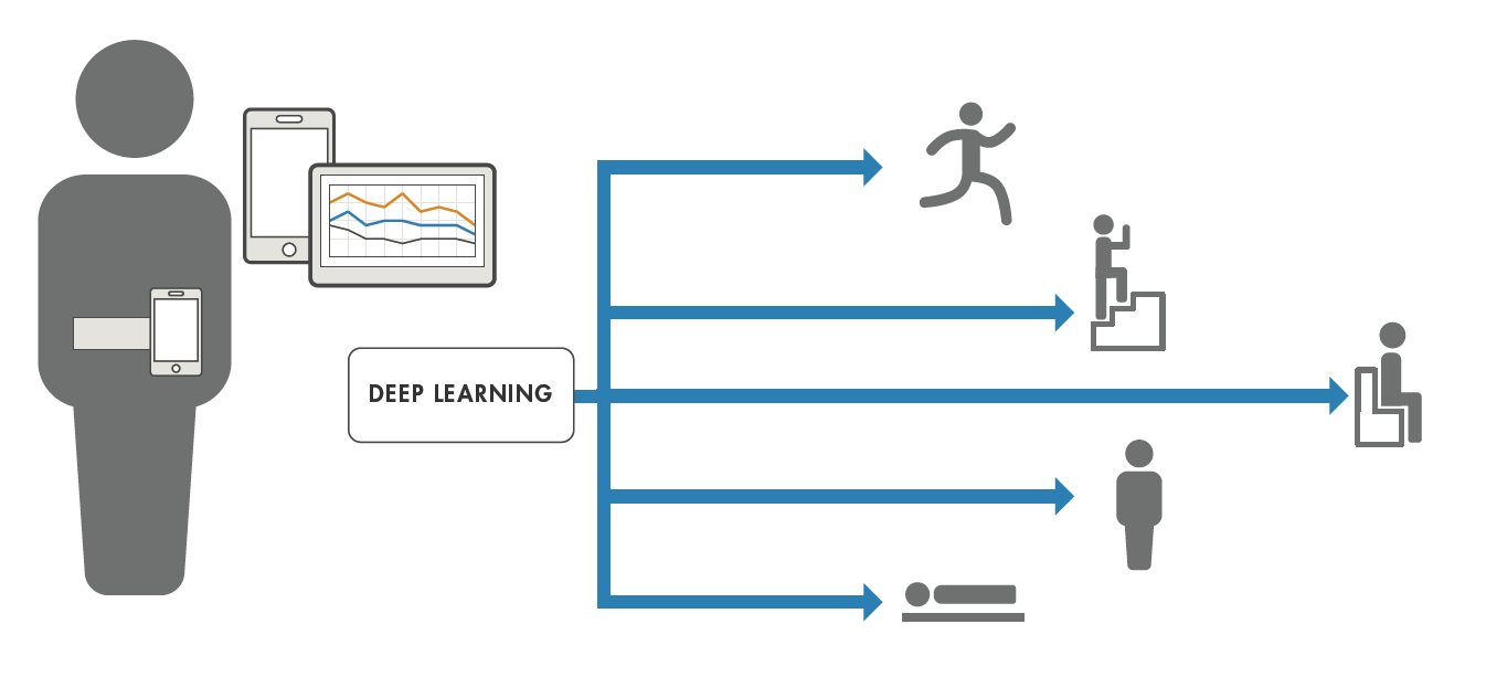 Ziel ist es, die von einem Smartphone erfassten Signaldaten zu verwenden, um sechs Aktivitäten zu klassifizieren: Gehen auf ebenem Boden, aufwärts Gehen, abwärts Gehen, Sitzen, Stehen und Liegen.