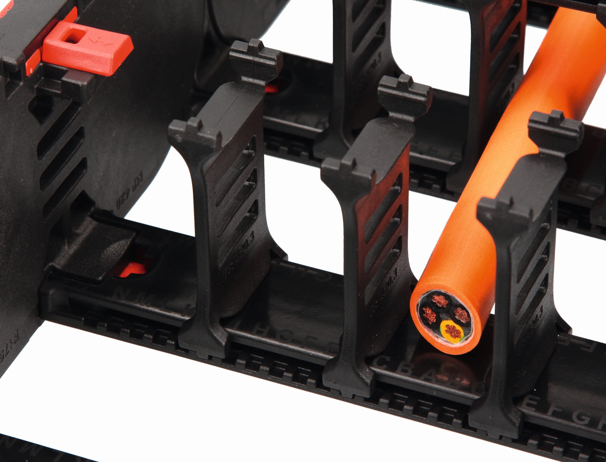 Die Rahmenstege der MP 420 Evochain verfügen über eine Buchstabenkennzeichnungsleiste. Diese ermöglicht eine einfache und eindeutige Zuordnung und Fixierung der Innenaufteilung. Der mp-ChainBuilder 3.0 (Online-Konfigurator für Energieketten: www.mympchain.com) stellt einen fertigen Montageplan – mit integrierter Buchstabenkennzeichnung – für die Innenaufteilung zur Verfügung. Die Montage ist dadurch ein Kinderspiel und schnell erledigt.