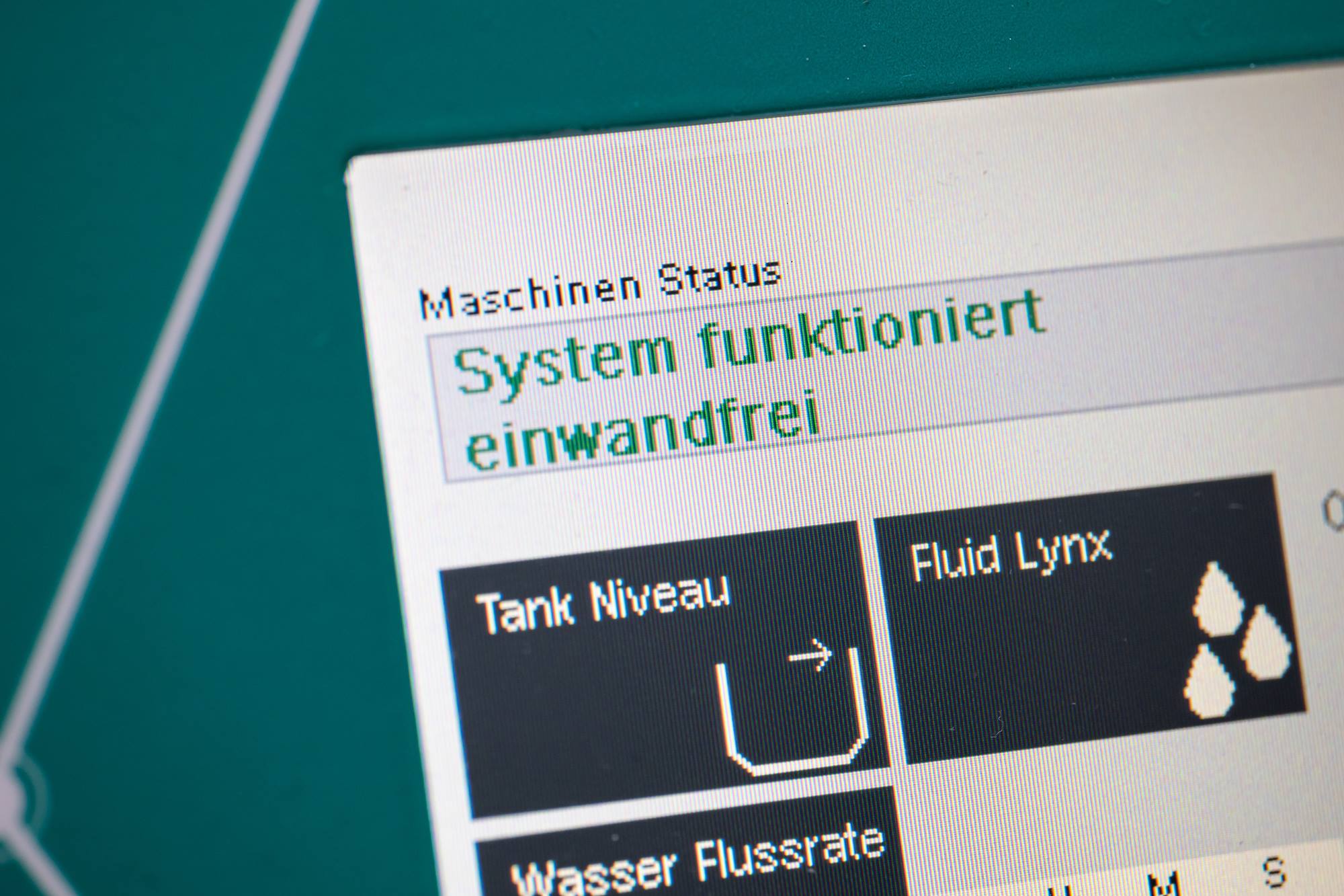 Die permanent steigenden Anforderungen in der sich dynamisch entwickelnden Medizintechnik sind Riesenherausforderungen für die Hersteller. Kaum eine Branche ist stärker reglementiert. Es darf nichts dem Zufall überlassen werden. Mittlerweile versorgt FLUIDLYNX die Fertigung seit mehr als einem Jahr mit Kühlschmierstoff und das jeden Tag in konstanter Qualität. Das Display zeigt, dass alle Werte im grünen Bereich sind. Mehrere Sensoren überwachen 24/7 die wichtigsten Werte wie Konzentration, pH-Wert, Temperatur und die elektrische Leitfähigkeit. FLUIDLYNX dosiert anhand der regelmässigen Überprüfungen automatisiert die Nachfahrrate und sorgt so für immer gleiche Konzentration. Manuelle Messungen werden nur noch sporadisch zur Kontrolle durchgeführt.